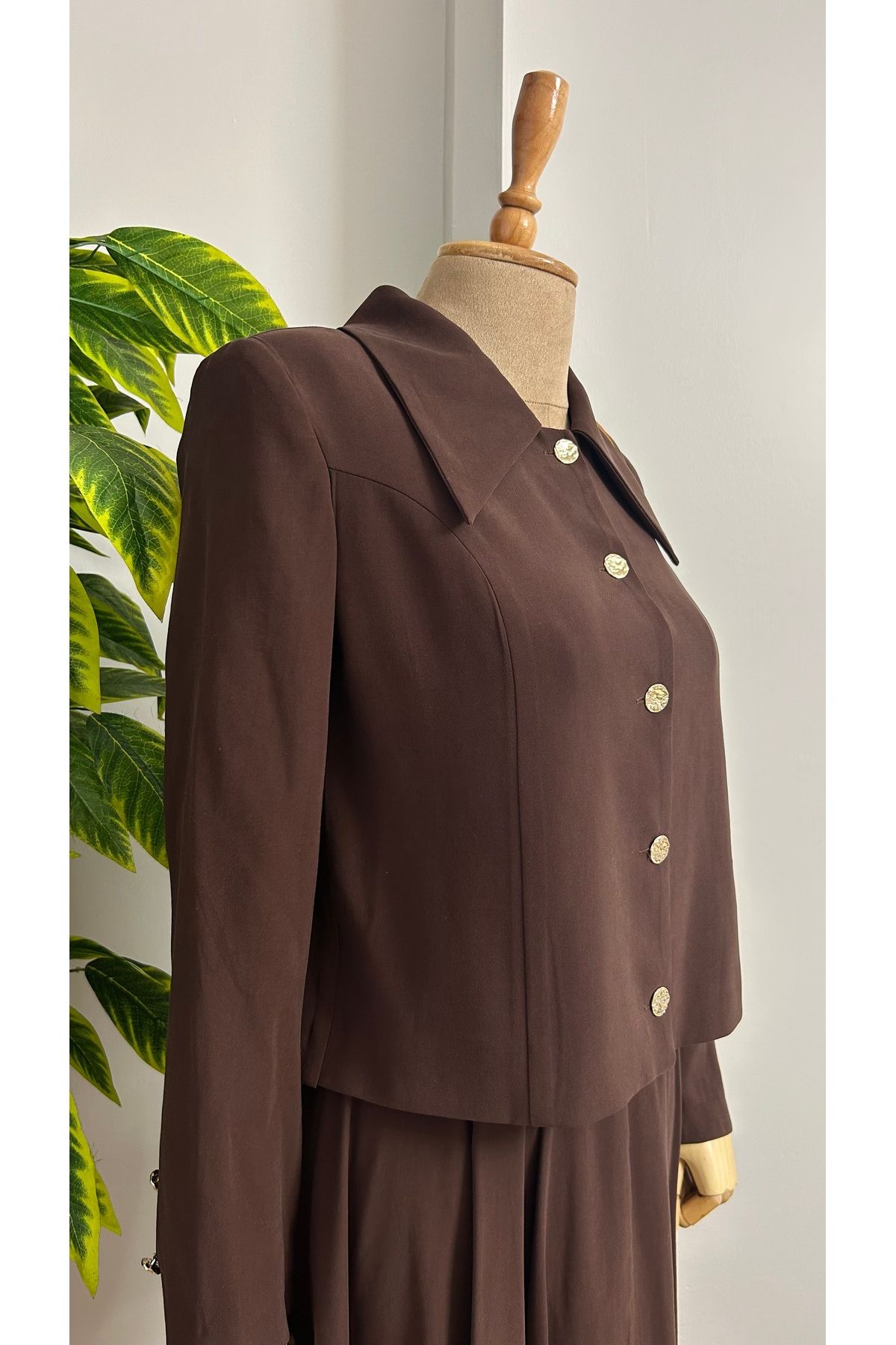 Pelerin Görünümlü Etekli Takım - Kahverengi
